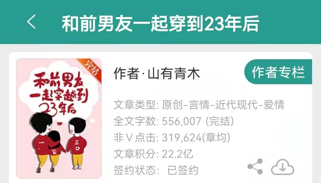 3、《和前男友一起穿到23年后》 作者:山有青木