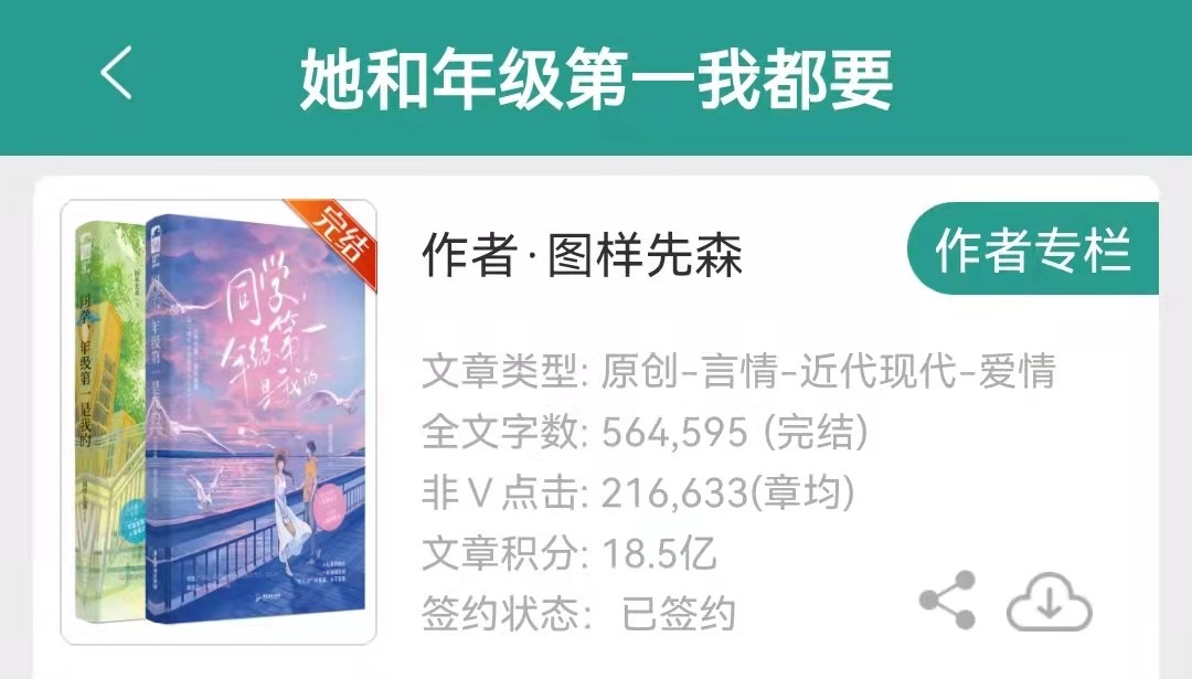 2、《她和年级第一我都要》作者:图样先森 出版名:《同学,年级第一是我的》