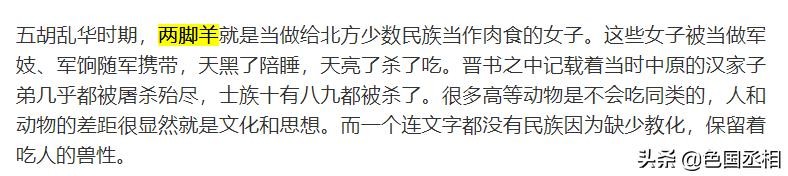 以上四点,就是如今由于网络流传的自媒体文章误导而存在的,对两脚羊这个词以及其背后的历史现实的误解。