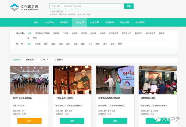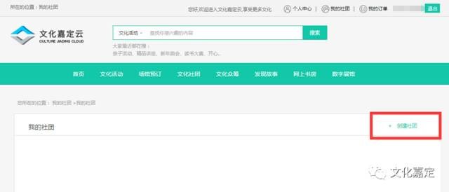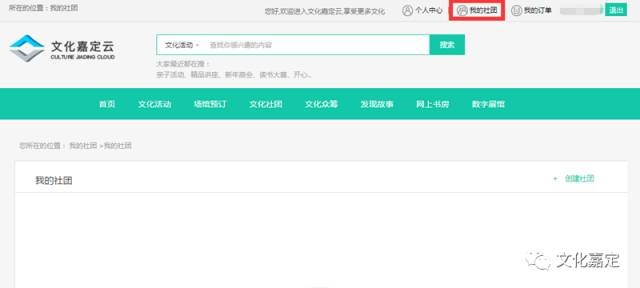 登录“文化嘉定云”,进入“文化社团”栏目;