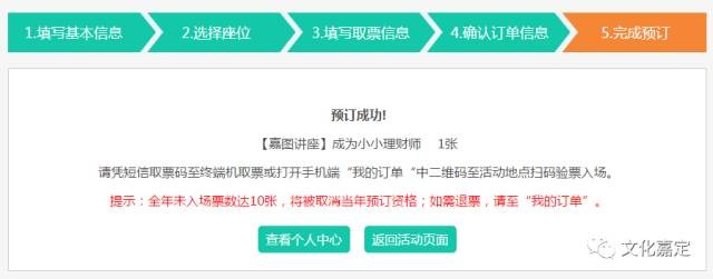 当活动为自由入座时,系统直接进入“填写取票信息”环节。
