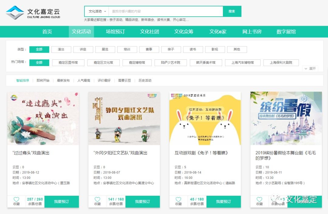 “文化嘉定云”是嘉定区在全国率先建成的公共文化数字服务平台,整合嘉定区内公共文化设施的线上线下资源,为市民提供“一站式”的现代城市公共文化服务。
