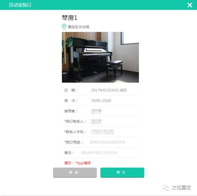 实名认证个人用户和团队用户均可进入网站“场馆预订”栏目,选择心仪的文化场馆进行预约,请务必如实填写您的活动内容,认真阅读订票须知和场馆使用须知,以确保您能安全、正常、有序、愉快地在文化场馆内开展文化活动。【只允许开展公益性文化活动,严禁进行收费项目,违者取消预订资格。】