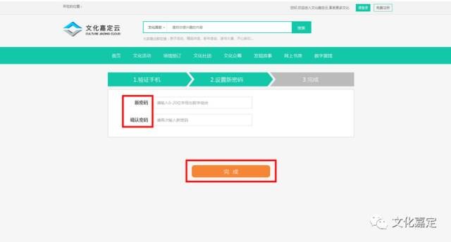 请在“文化嘉定云”网站登录页面点击“忘记密码”,进入密码修改页;