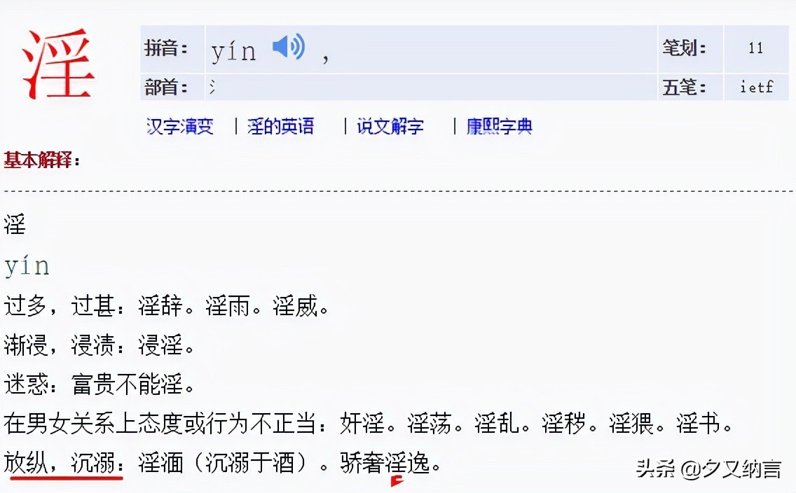 淫字,现代字典上也有四种解释: