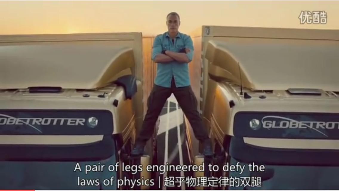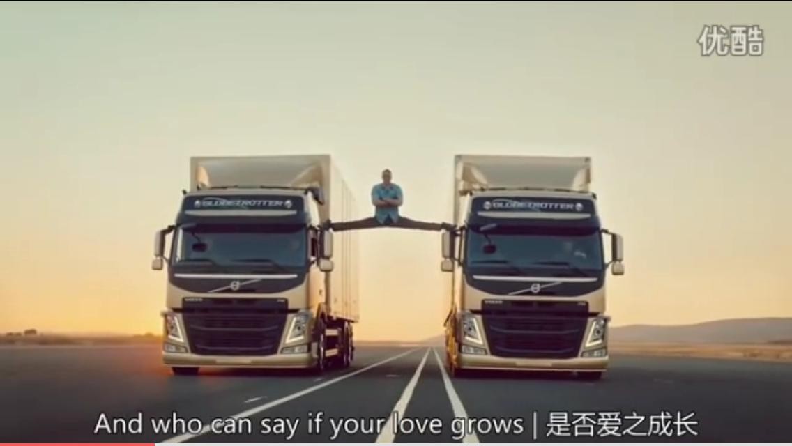 最近无意间看到他为沃尔沃公司代言的FM重卡,该广告通过两辆卡车的倒车及尚格云顿的高难度劈叉动作突出此系统的平稳性以及极高的可靠性。