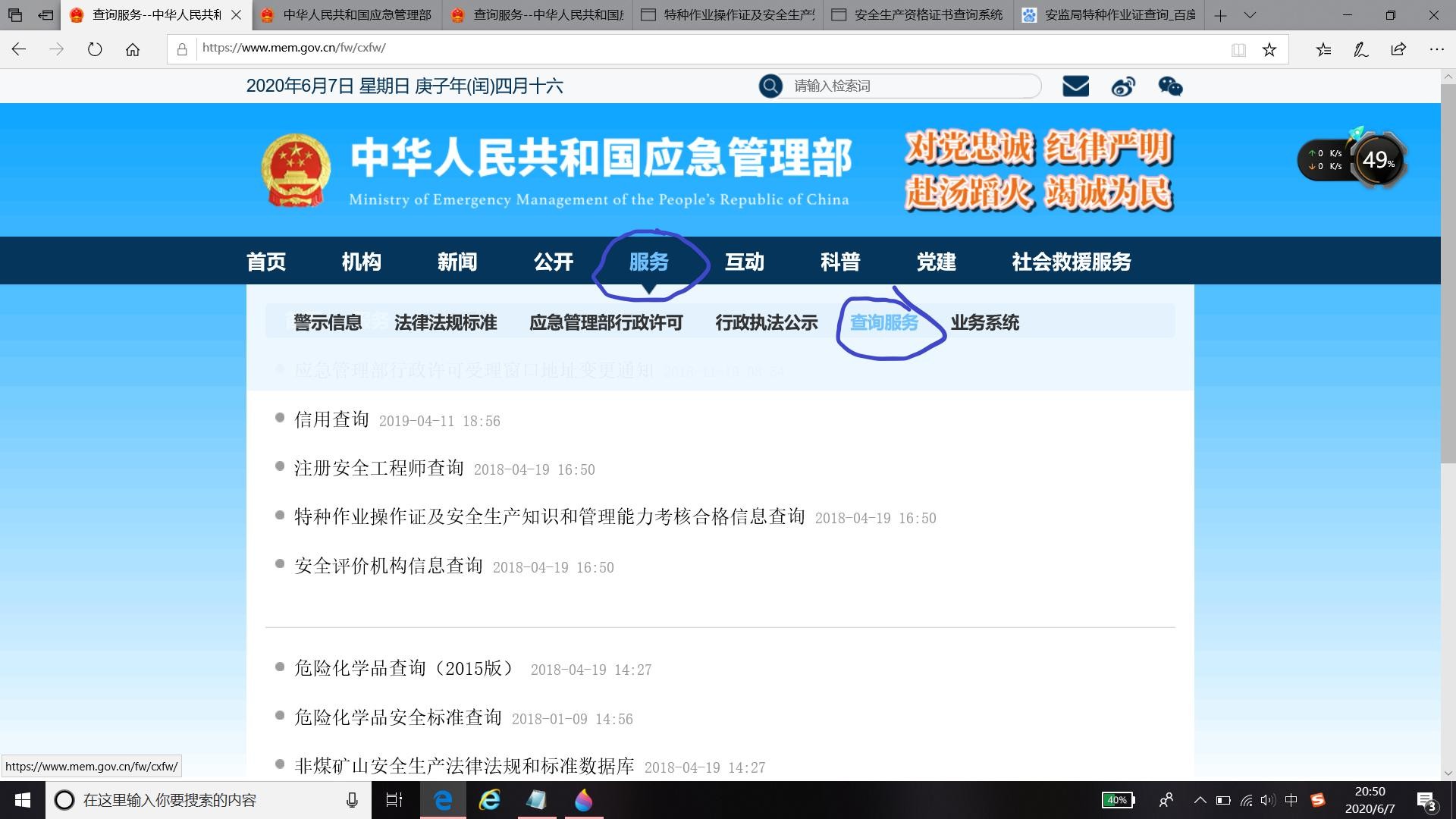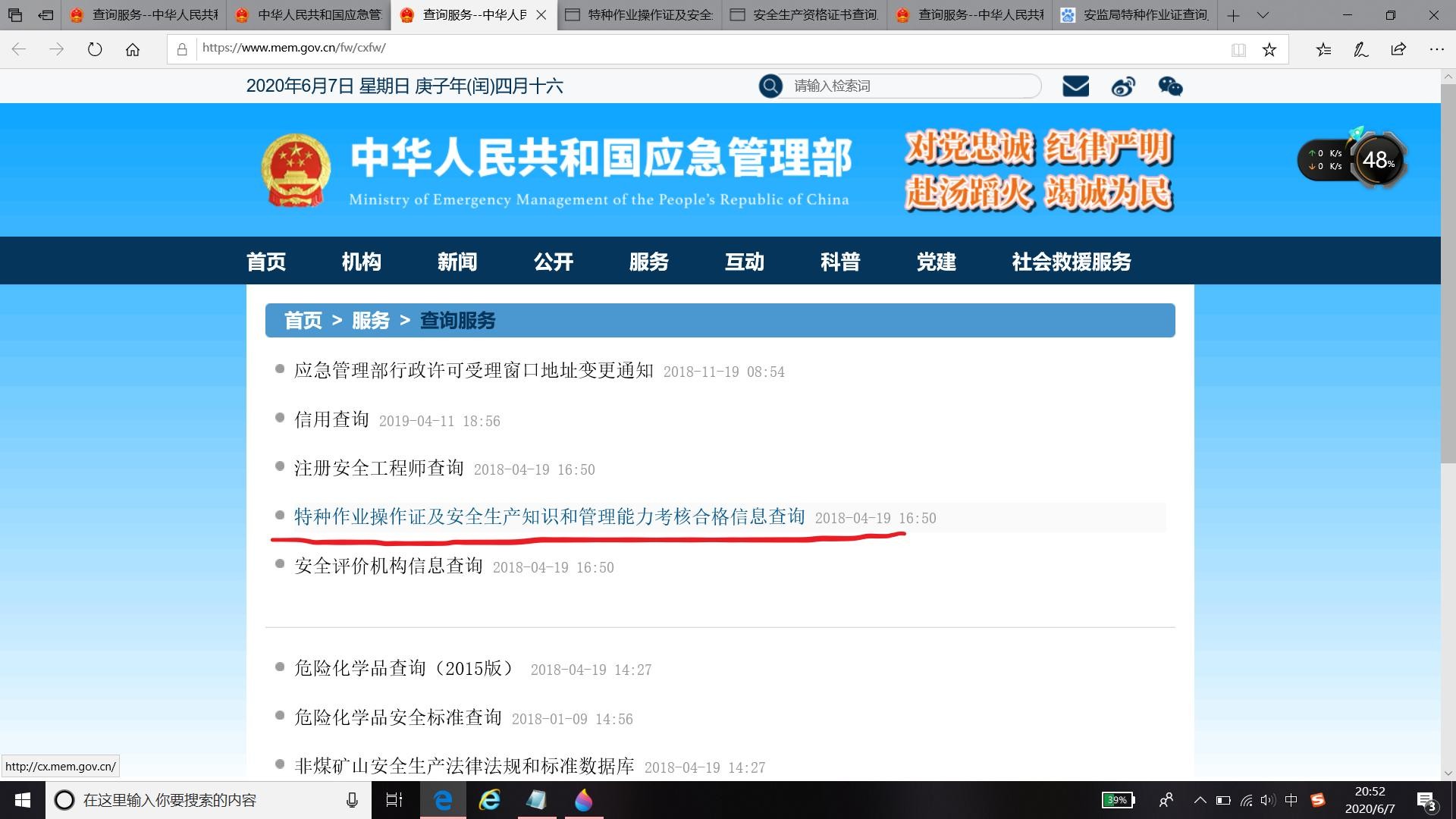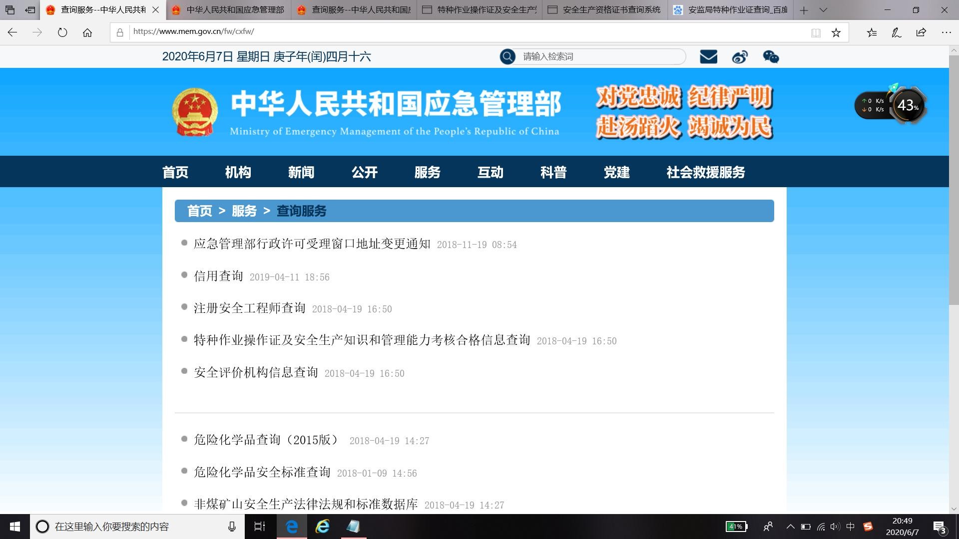 登录https://www.mem.gov.cn/fw/cxfw/中华人民共和国应急管理部官网