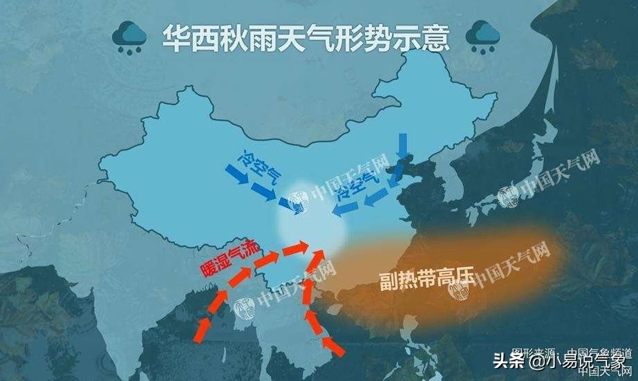 之所以在这个时间会出现连绵的秋雨,是因为到了秋天之后,副热带高压南退,从西北太平洋“远道而来”的暖湿空气源源不断地输送到华西地区,使得这里具备了比较充沛的水汽条件。与此同时,冷空气势力逐步加强,前往华西地区和水汽一同凑热闹,冷暖空气在我国西部地区频频交汇,便形成了连绵不断的秋雨。