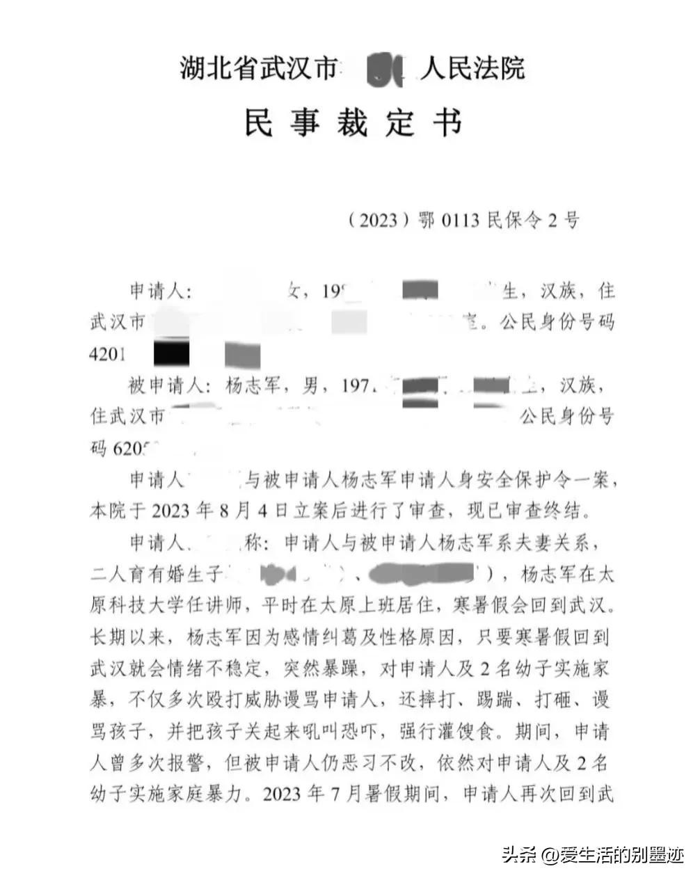 涉事者名叫杨志军,是山西省科普作家协会理事、太原科技大学教授,妥妥的高知分子、令人羡慕的人生赢家。但他做梦都没有想到,就在昨天,他的合法妻子猛然醒悟,开始了一次纠结已久的维权。
