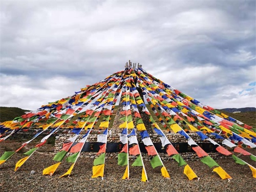 大年初三,每家都会在各自的门前挂上新的经幡,经幡俗称“风马旗”。换上新的风马旗,祈祷新的一年家人平平安安。