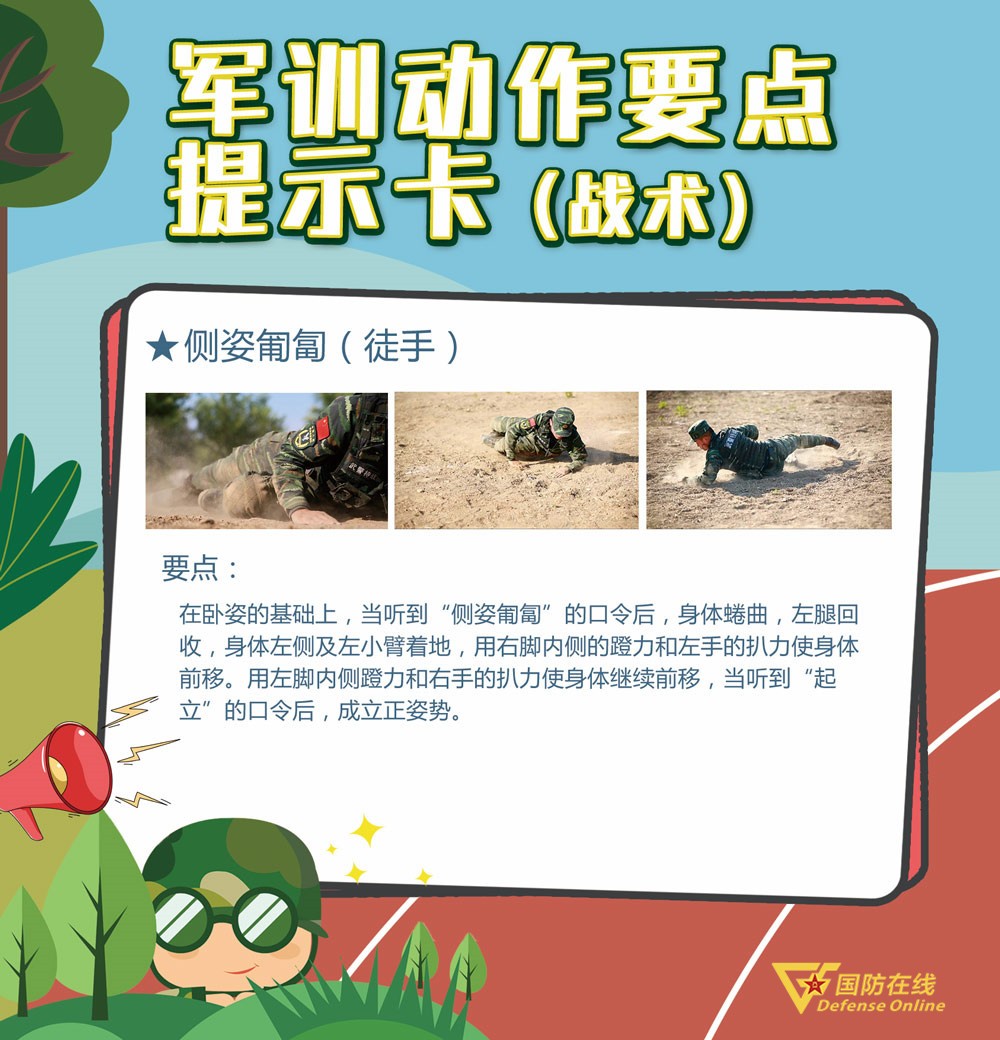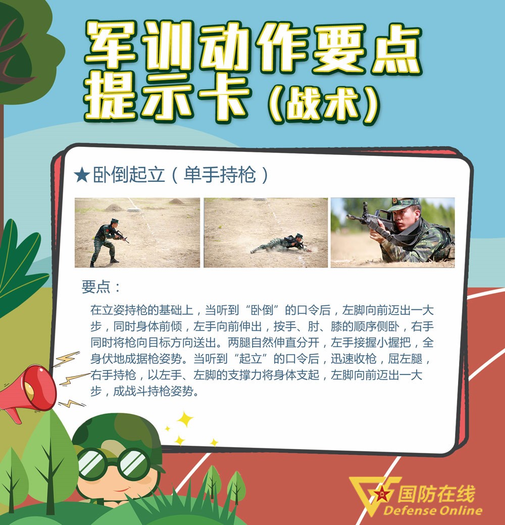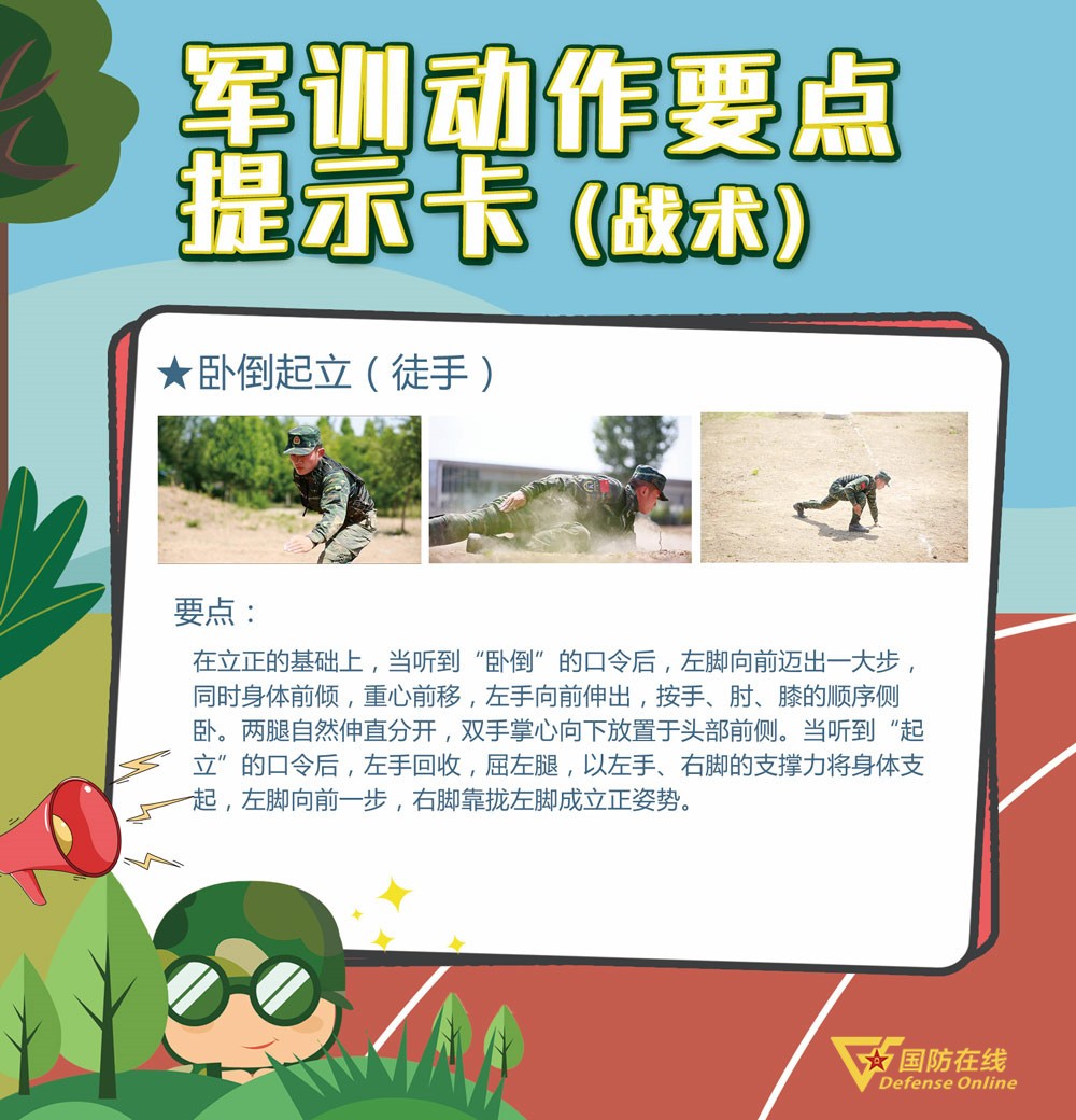 随着学校陆续开学,学生军训工作同步展开,在全国各地的军训场上,到处都是挥洒汗水的迷彩身影。这个军训季,国防在线客户端特别推出“军训动作要点提示卡”系列策划,为你带来最规范的军训动作演示。
