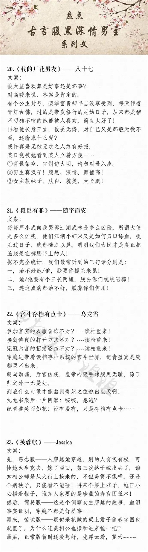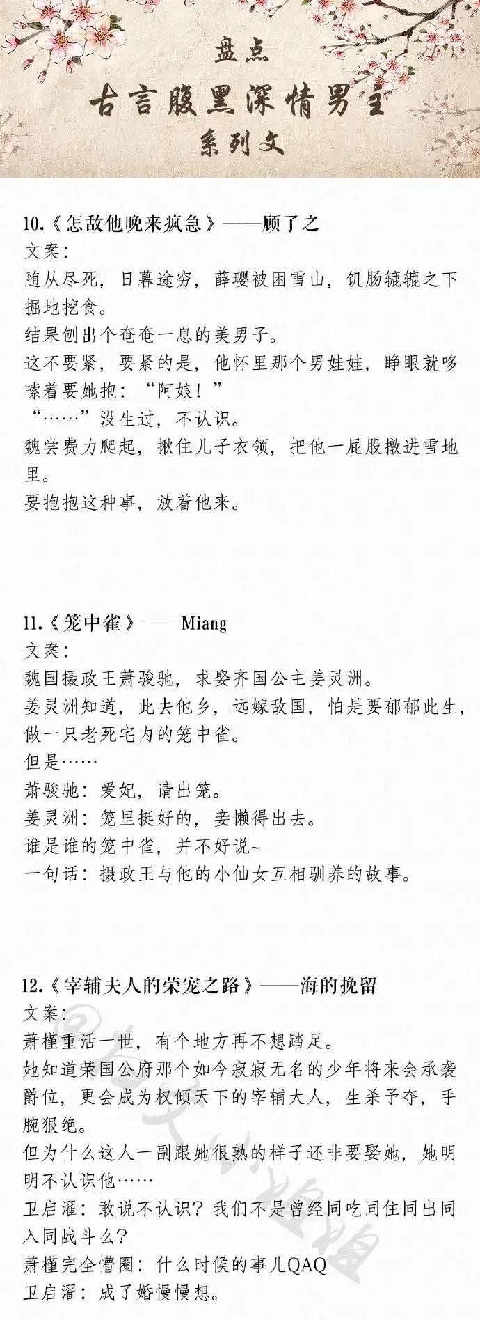 今天推荐一批最值得一看的男主腹黑又深情的古言文,全都是经典好文。