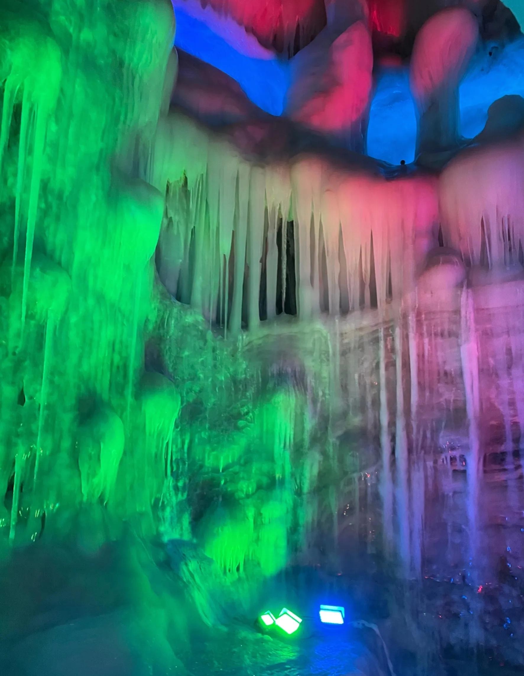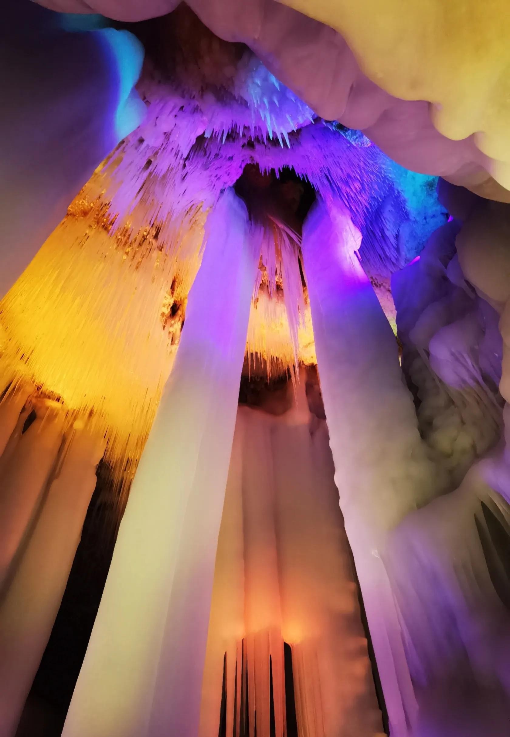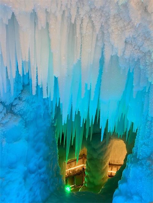 该冰洞位列全国一万多个洞穴中仅有的9个冰洞。洞内制冷机制强、冰储量多,现开发近百米。已开发部分,有冰帘、冰钟、冰花、冰人、冰菩萨等。洞内壁上皆冰,堪称一个冰的世界。洞内大大小小的景致或玲珑剔透,或晶莹夺目,或婀娜多姿,或壮丽宏伟,无不令人惊叹。