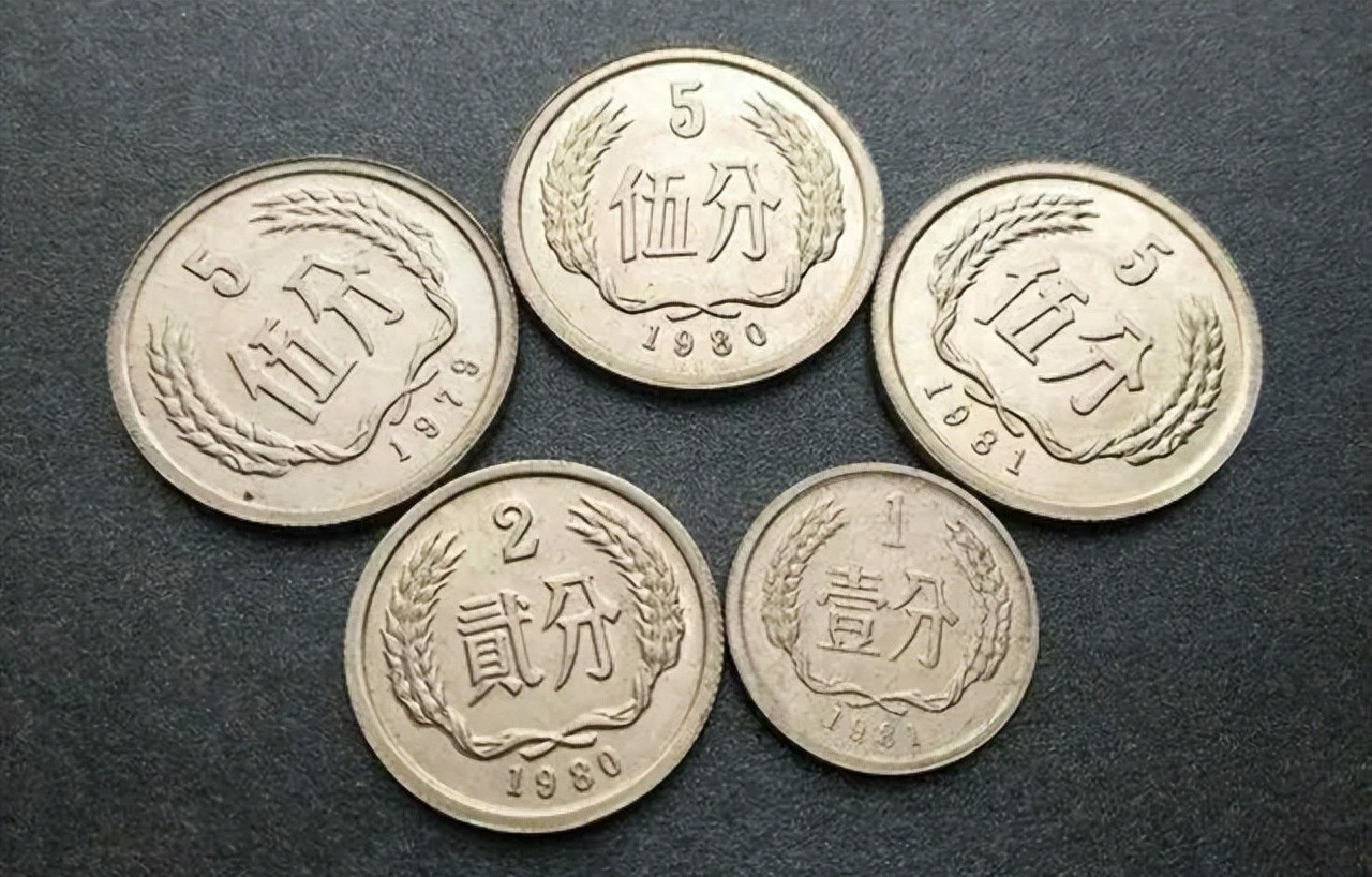 五大天王硬币是指1979年5分、1980年2分和5分、1981年1分和5分这五枚硬币。这些硬币因发行量极少,主要作为收藏品装帧成套出售给外国游客,从未正式流通,因此在收藏界享有极高的地位。每枚硬币的发行量均不超过5000枚,其中1979年5分和1980年5分尤为稀缺。