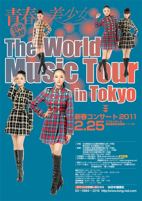 2011年2月25日,青春美少女组合应“日中通信社”邀请,在日本东京成功举办了“青春美少女世界巡演”东京站的个人演唱会,这也是大陆首支歌舞女团在日本举办专场演唱会,演唱会中间,“日中通信社”给青春美少女组合及经纪人大唐颁发了“中日文化交流贡献大奖”,此次东京演唱会日本各大电视台,报纸及网络均做了大篇幅报道,演唱会期间,青春美少女还做客多档日本综艺节目与日本歌迷见面并演唱。