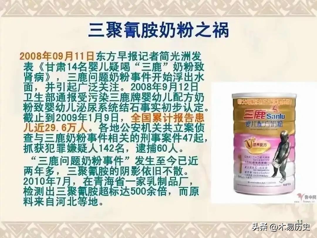除三鹿外,蒙牛、伊利等其他几家大品牌也被检出了三聚氰胺,部分受害婴儿还终身需要通过洗肾维持生命。