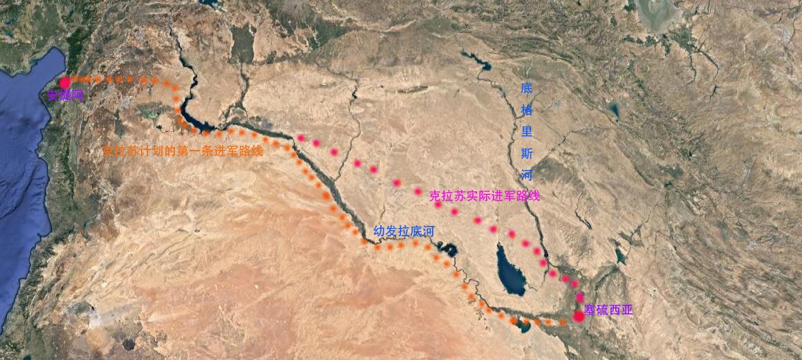 二是在幼发拉底河到达后向东南行进,横穿美索不达米亚的沙漠到达底格里斯河,再沿着这条河到达赛琉西亚。