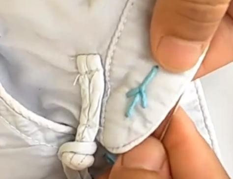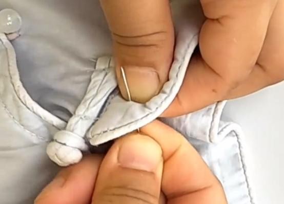 1.在布料反面出针,在大约1厘米的间距处入针。