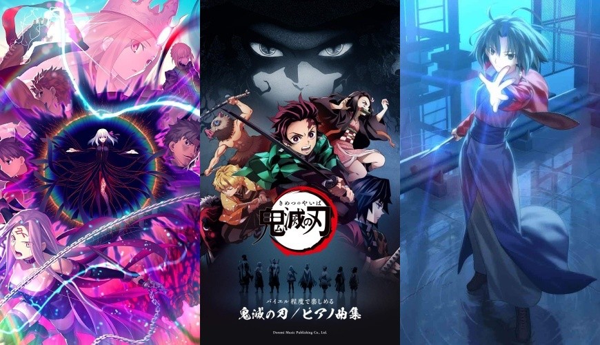 (由左至右)Fate/stay night [Heaven's Feel]、鬼灭之刃、剧场版 空之境界