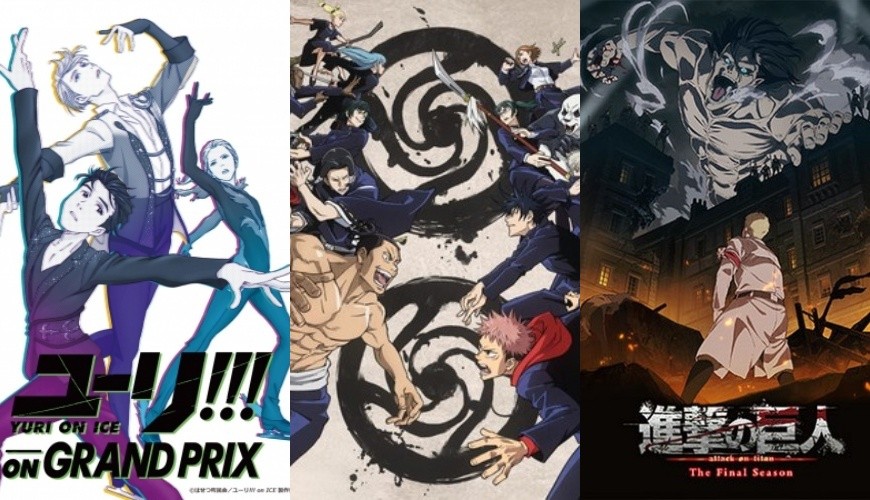 (由左至右)Yuri!!! on ICE、咒术廻战、进击的巨人最终季