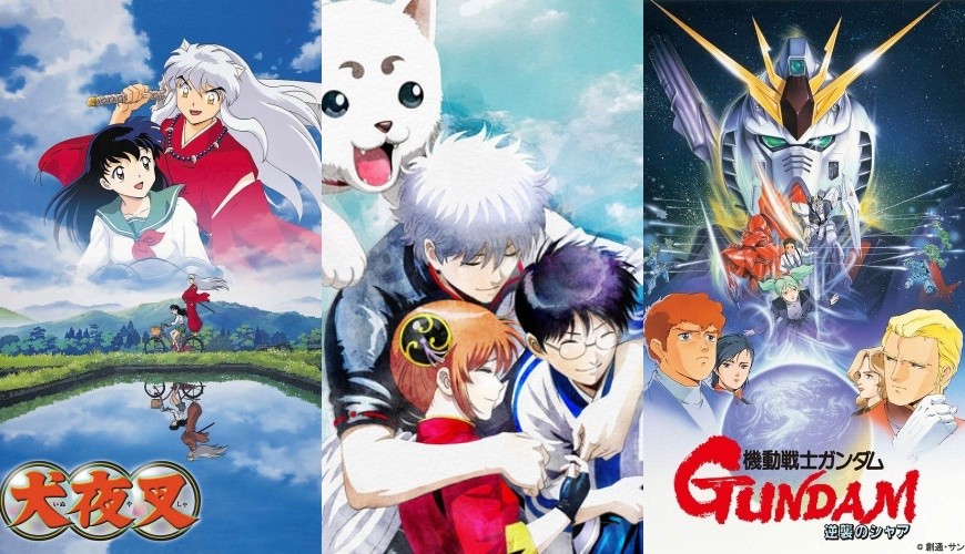 (由左至右)犬夜叉、银魂(剧场版《银魂 THE FINAL》动画制作:SUNRISE的子公司「BN Pictures」)、机动战士钢弹