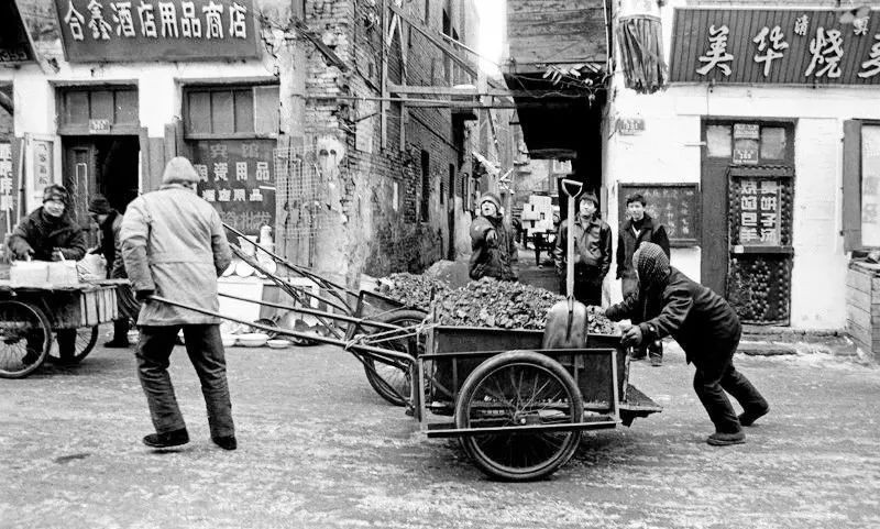 上世纪90年代,在老道外大杂院里做煤球的老人