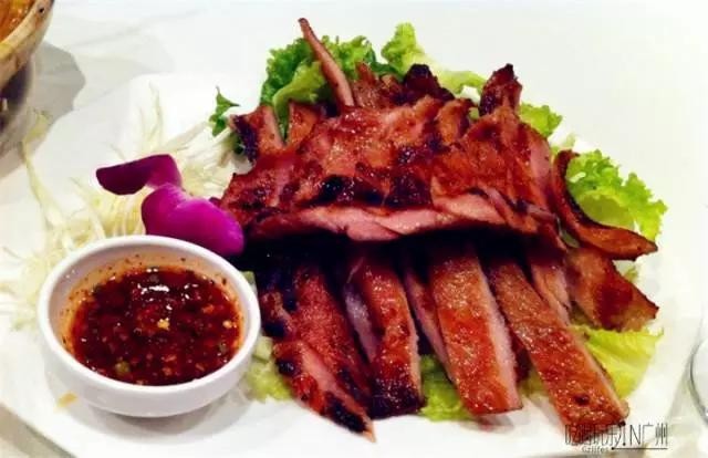 吊烧猪颈肉加上泰国秘制酱汁,绝对与你在广州其他店吃到的不一样。