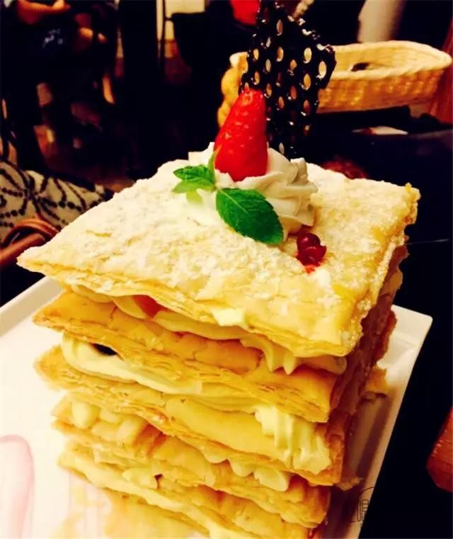 老板专门推荐的拿破仑千层酥,一口都塞不下的美味,不爱甜品的我也爱上了这股味道。