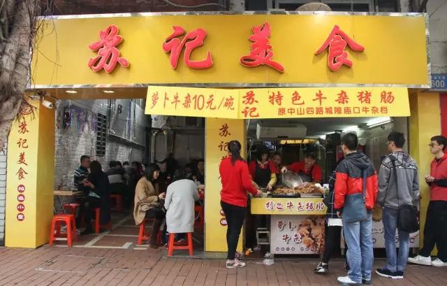 苏记美食算得上系老字号,价钱非常亲民,加上牛杂的香味系50米之外都已经闻到,所以档口门前总系会排晒长龙!