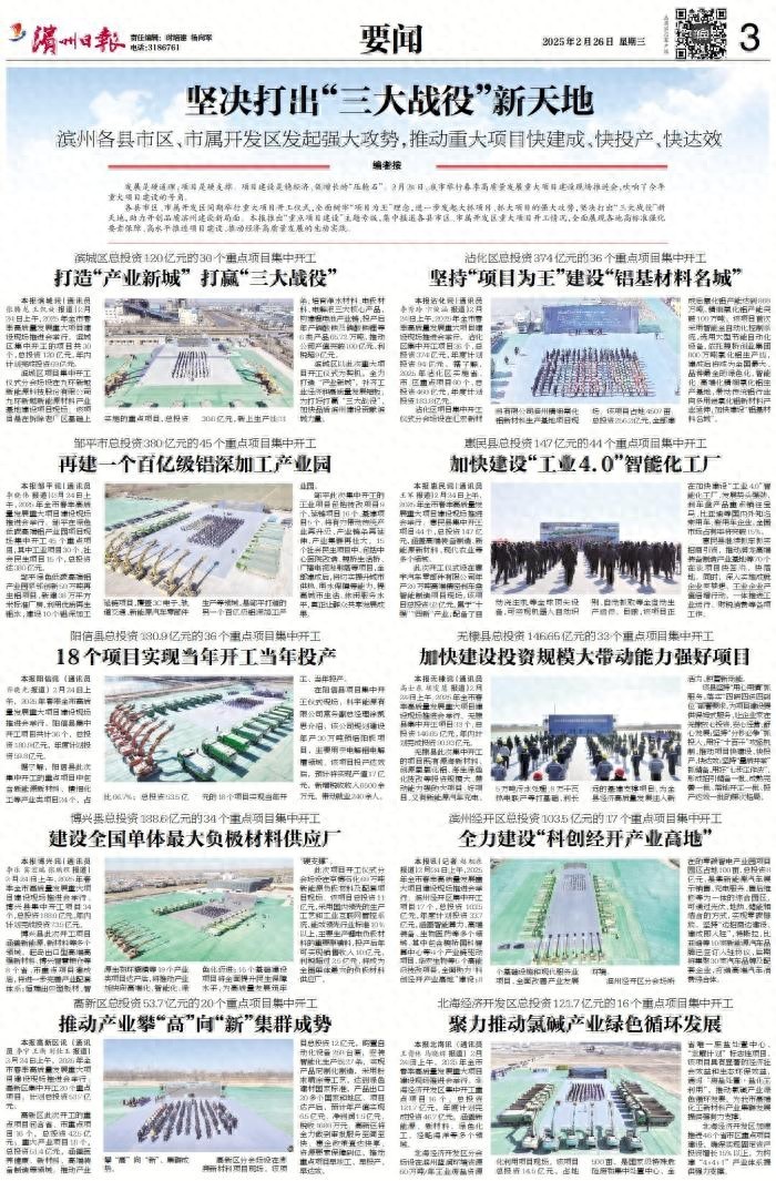 坚决打出“三大战役”新天地——滨州各县市区、市属开发区发起强大攻势,推动重大项目快建成、快投产、快达效