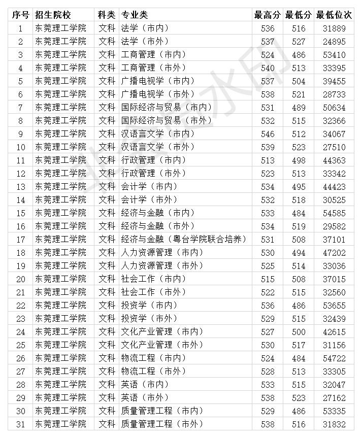 东莞理工学院是东莞第一所本科院校,该校也是广东省公办普通本科大学,目前设置有50多个本科专业,没有专科批次招生,2020年高招面向省内,理科录取线最低469分,文科面向东莞市内最低484分,纳贝斯特教育整理了东莞理工学院2020各专业录取分数线,供参考。