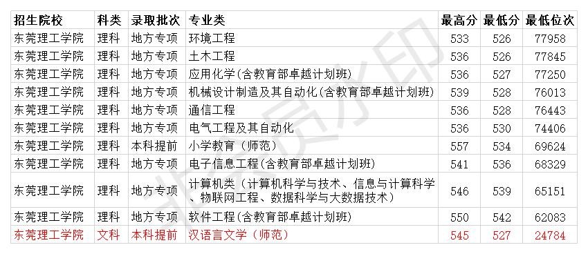 东莞理工学院2020各专业录取分数线 理科最低469分