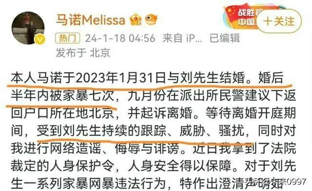 马诺在社交平台上发布的长文,如同一个悲伤的独白,让我们看到了她婚后的生活。她的婚姻仿佛是一场梦魇,半年内被家暴7次,每一次都让她心如刀割。面对这样的折磨,她选择了勇敢地站出来,起诉离婚,却遭遇了更多的困境。
