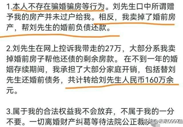 刘先生的指控让这场闹剧更加扑朔迷离。他控诉马诺骗婚骗房,还带走了他的个人财产。然而,马诺对此进行了反驳,她称自己并没有骗婚骗房,反而为了这段婚姻付出了巨大的代价。她透露自己曾给刘先生转账约160万元,甚至还倒贴钱为男方还债。这样的付出,换来的却是无尽的痛苦和背叛。