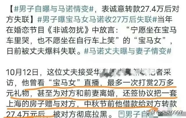 在这个充满物质诱惑的时代,宝马女马诺的故事似乎成为了一个耐人寻味的篇章。她曾因在非诚勿扰节目中直言不讳的言论,成为了人们口诛笔伐的对象。如今,她再次成为了舆论的焦点,这次是因为她的婚姻遭遇。