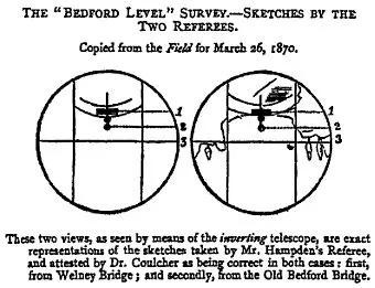 当然,什么组织人一多就容易麻烦,1870年,一个叫约翰·汉普顿的泽特天文协会会员就整了个烂活,他在各大报纸上刊登出一则悬赏——如果有人能用河流等水体实验证明大地是曲线,我立马给他500英镑(相当于现在5万英镑),决不食言!