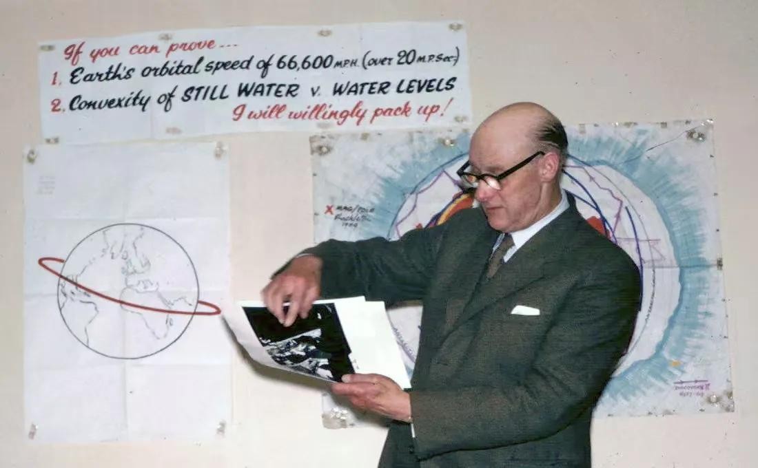 总之,在经过博物馆悟道之后,申顿决心重组地平党,1956年,他在多佛注册了“国际地平学说协会”,并且在之后到处演出,四处演讲,还给人剪彩。据他自己说,连萧伯纳都听过自己的讲座。