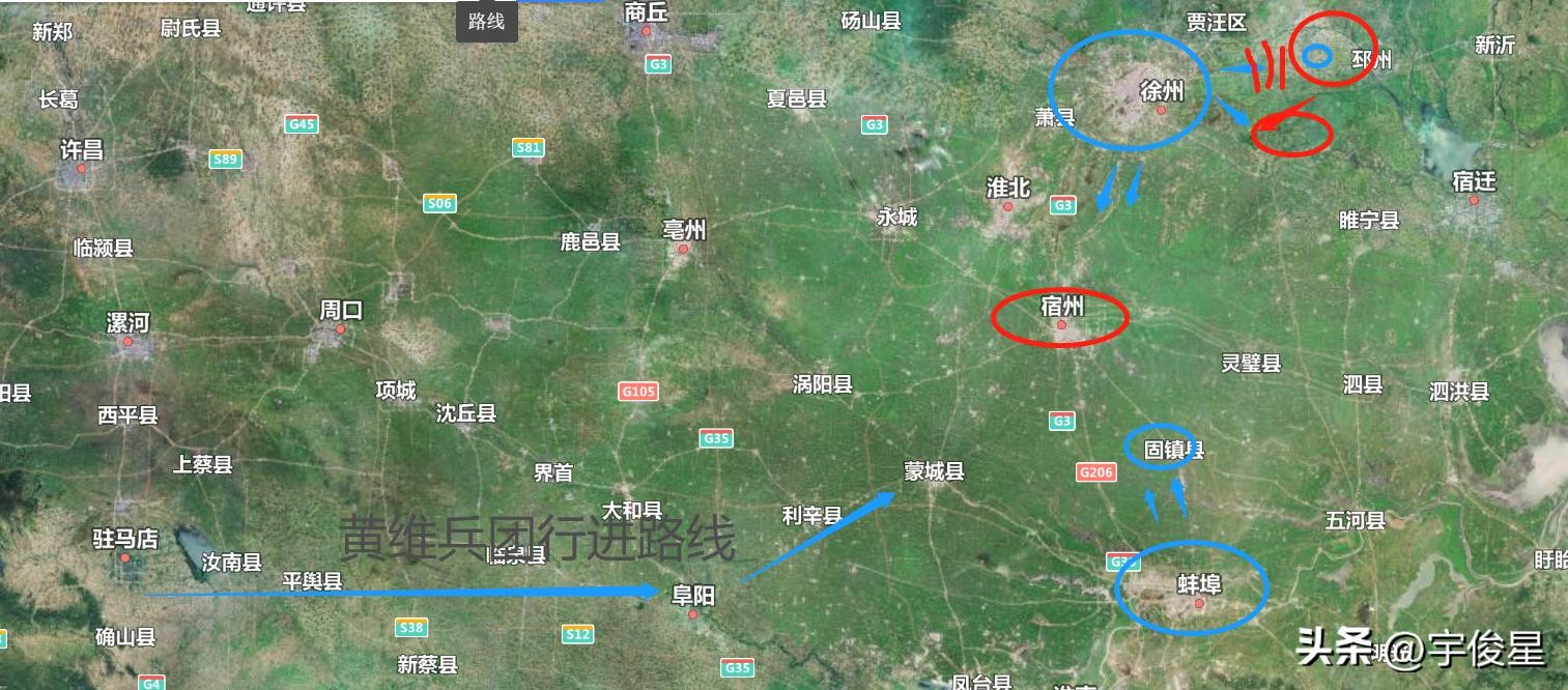 黄维兵团行进路线 48年11月6日~18日