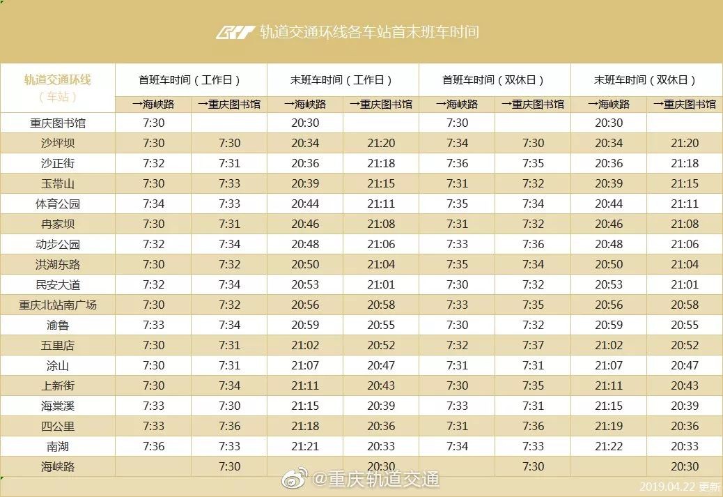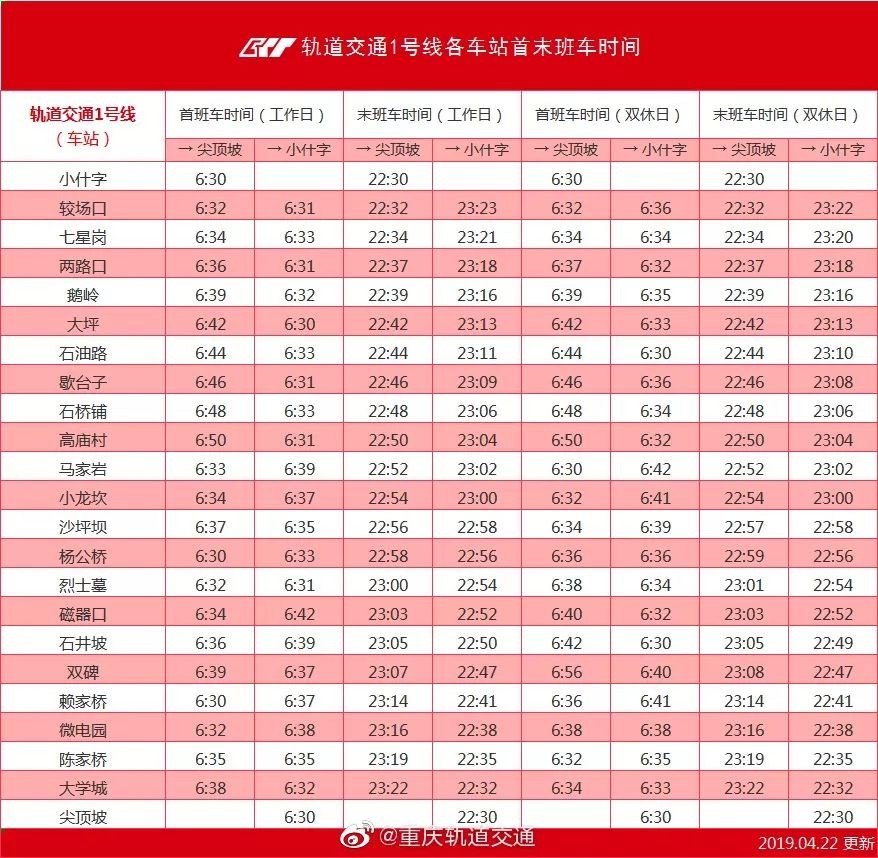 速度收藏!重庆轨道交通最新运营时刻表来了