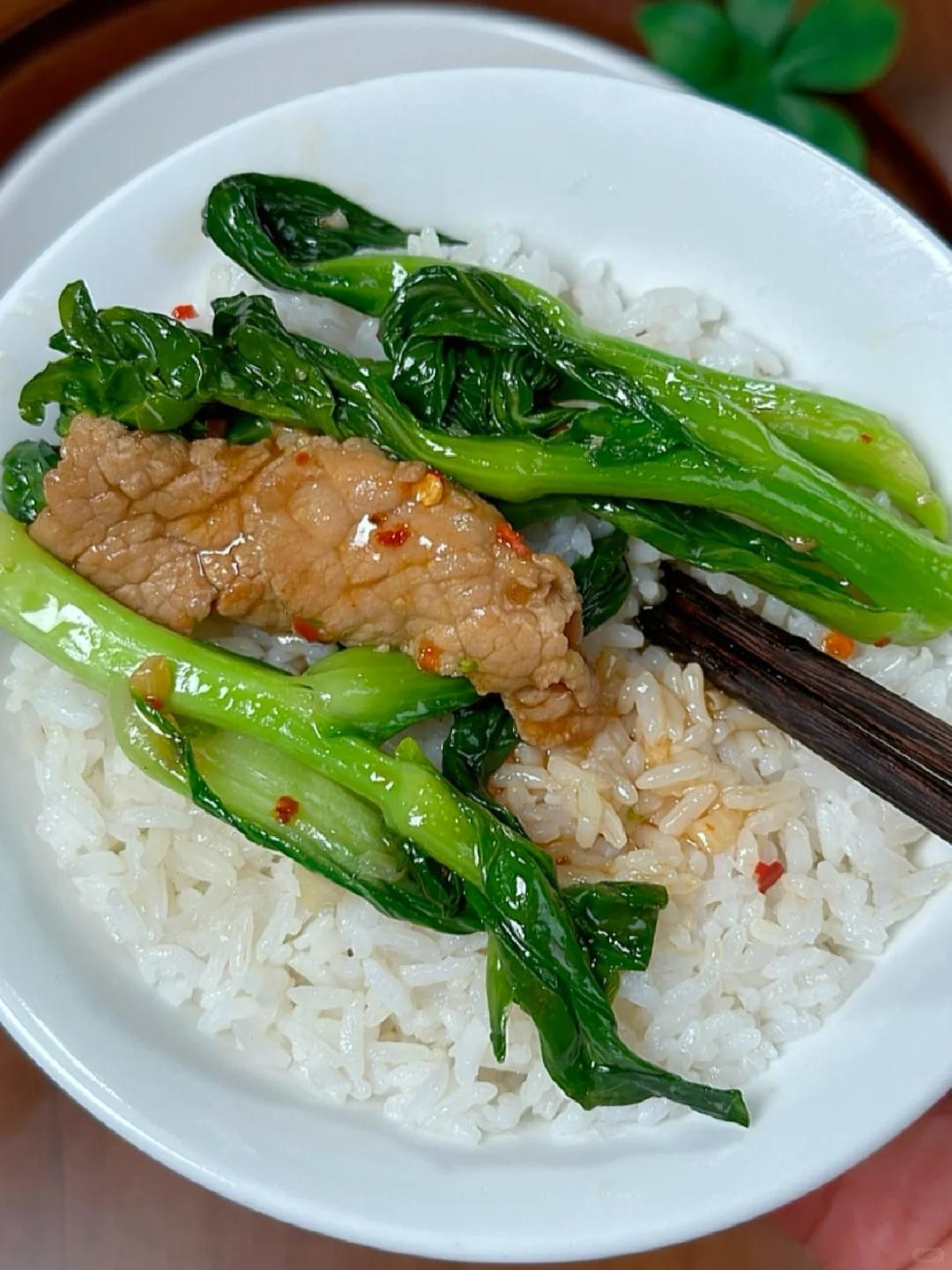今天做了青菜炒肉片,肉片嫩滑,青菜爽脆,带点丝丝甜味,汤汁拌饭特别好吃,大家可以试一下。