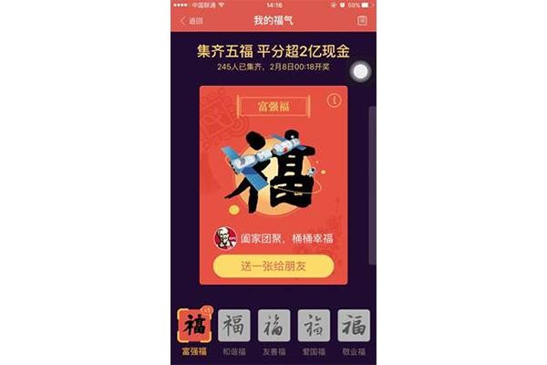 收集“福卡”抢春晚红包:支付宝 推出“吱口令”新玩法
