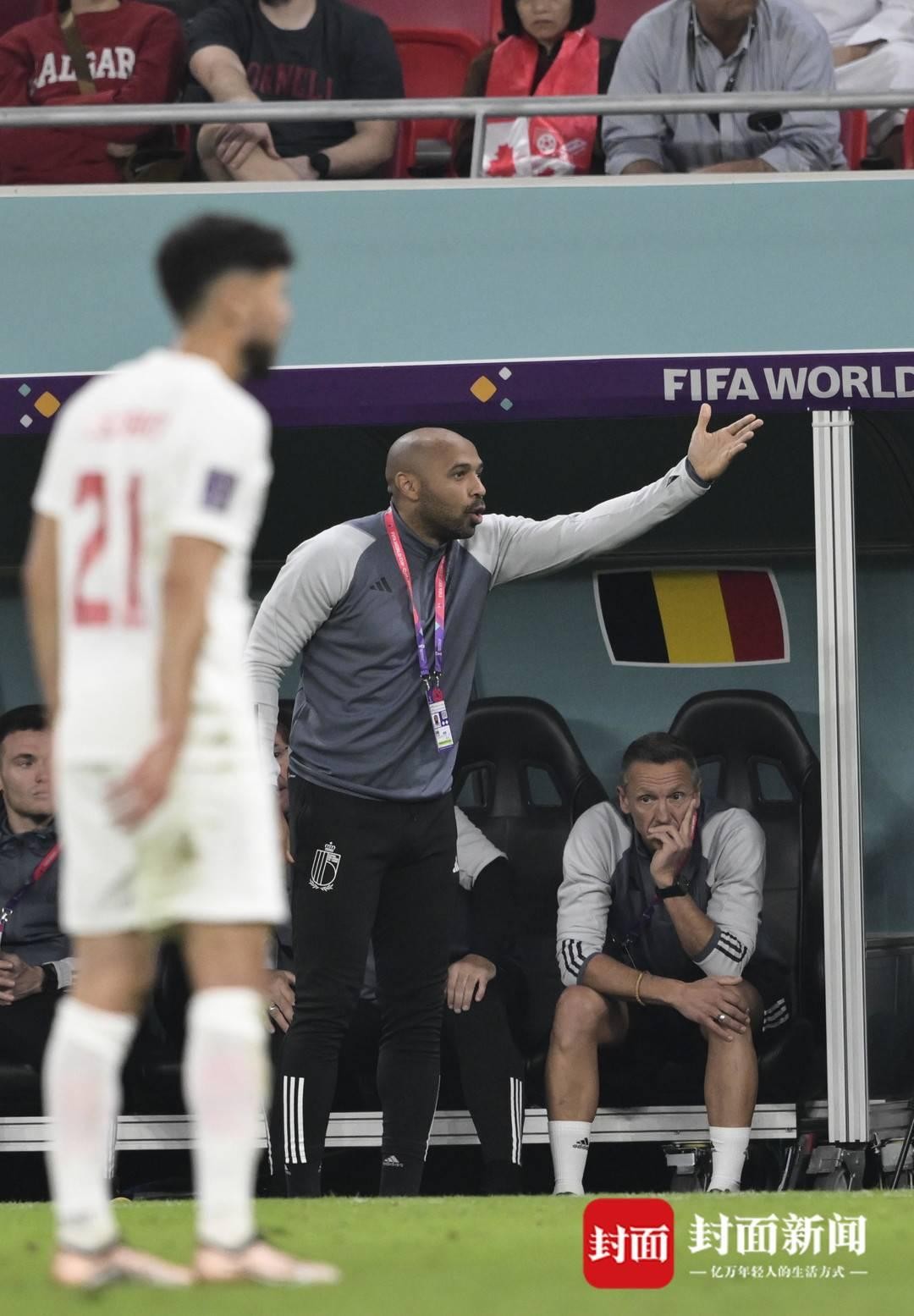 比赛中,主教练与亨利交流除了场上球员,替补席上有一个身影吸引了很多人的关注,甚至超过了主教练马丁内斯。他就是亨利,曾经的足坛顶级球星,现在他担任比利时队的助理教练。