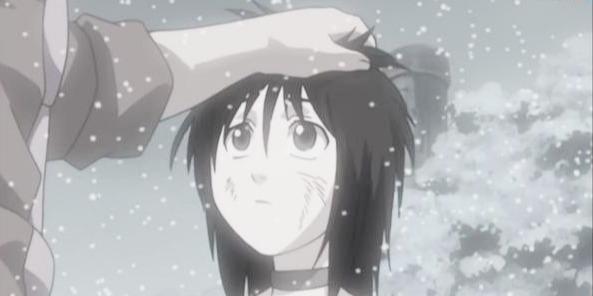 白出生在一个普通家庭,因为遗传,从母亲那里继承了血继限界。这是一部分与生俱来的特殊能力的统称,战乱时代,血继限界经常引发抢夺,暴力甚至战争,被视为不详。父亲偶然发现了母亲的隐瞒,在狠心杀害了白的母亲之后,准备把白也杀了。生死关头,白不经意发动了血继限界的能力,杀了自己生父,从此成了流浪的孤儿。后与逃亡的再不斩相遇被其收留。白因为悲惨的身世,一路走来的孤独,对于认可他的再不斩大人,白视为比生命重要的存在。他明白再不斩不需要安慰或陪伴这些没用的东西,所以立志要成为再不斩的武器。