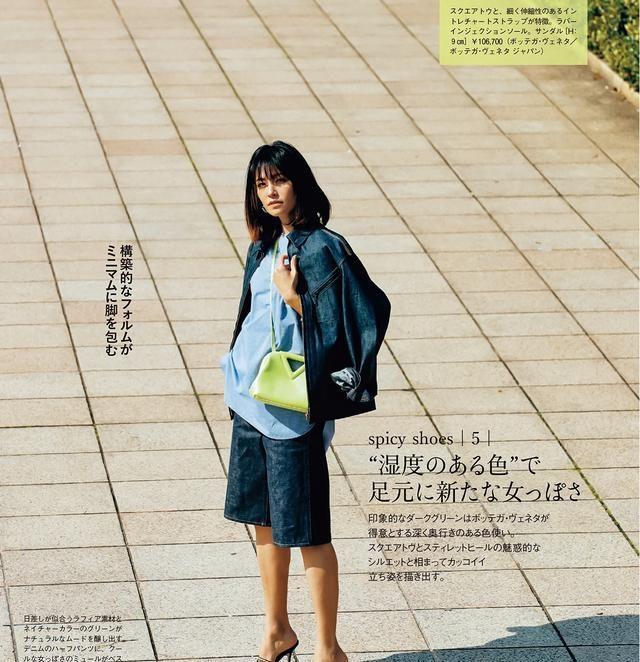 夏天穿牛仔裤如何体现与众不同的高级感?不妨尝试下和豆沙绿的上衣做搭配,同样清爽的两个色,不同材质碰撞在一起,让人眼前一亮。如果想要更有层次,可以运用色彩呼应技巧,比如豆沙绿的上衣和鞋子、包相呼应。
