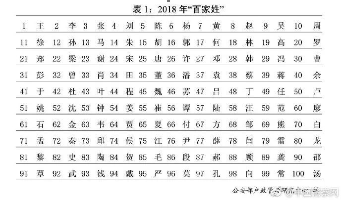 嗨!七点出发丨2018年“百家姓”公布!你的姓氏在榜吗?