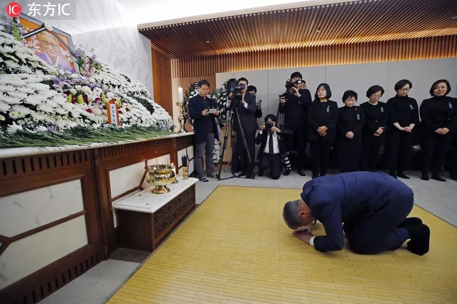 (当地时间2019年1月29日,韩国首尔,韩国总统文在寅现身吊唁已故日军慰安妇受害者金福童。)