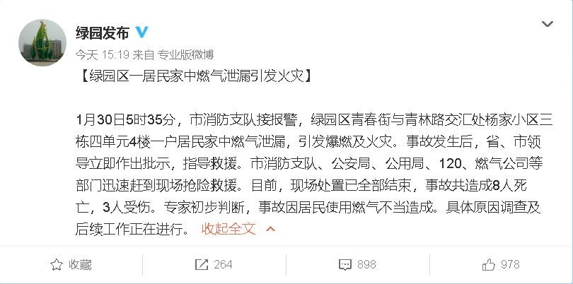 6.30日,吉林长春绿园区一户居民家中燃气泄漏,引发爆燃及火灾事故共造成8人死亡,3人受伤。专家初步判断,事故因居民使用燃气不当造成。