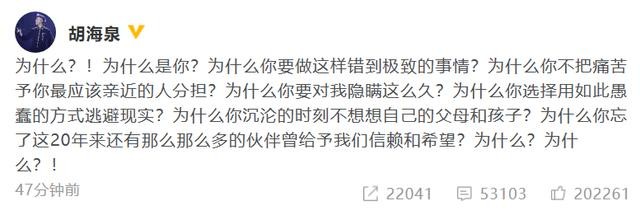 而陈羽凡在出狱后,网上几乎没有了他的消息,今年年初还发生了一个乌龙事件,胡海泉在社交平台发文: