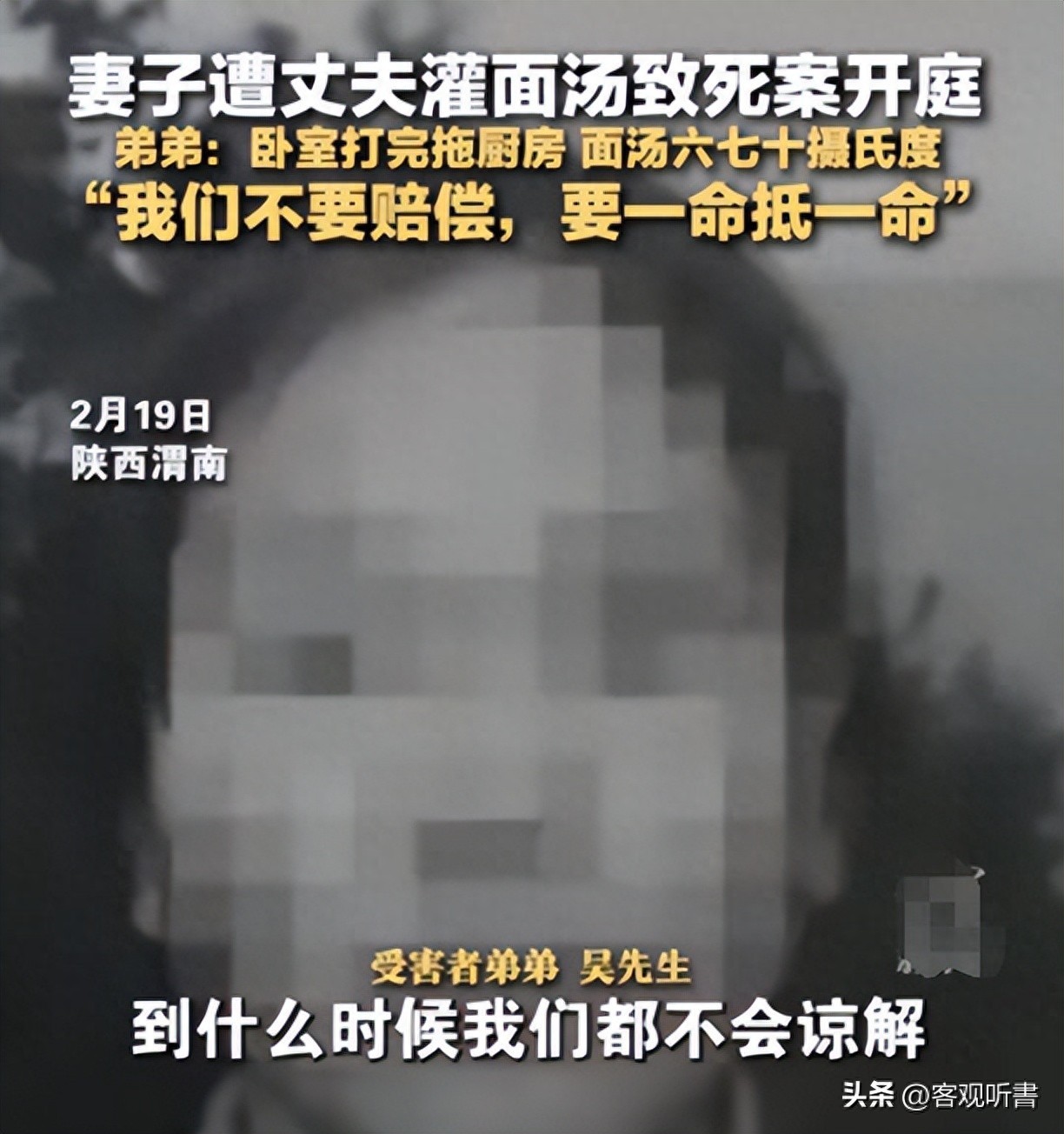 后续!丈夫灌面汤呛死妻子,儿子非要姥姥原谅父亲,原因曝光