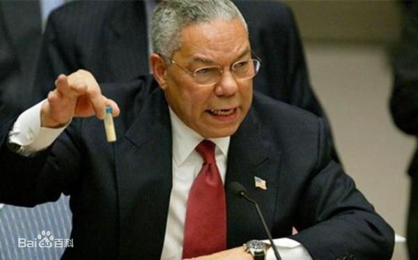 2003年,美国出兵攻打伊拉克,理由是萨达姆正在研制核武器和化学武器,造成了几十万的伤亡,美国是去执行正义,为了说明自己打的是“正义的”战争,时任美国国务卿的鲍威尔在联合国安理会的听证会上举着一小瓶白色粉末,说这就是伊拉克正在研制的化学武器。